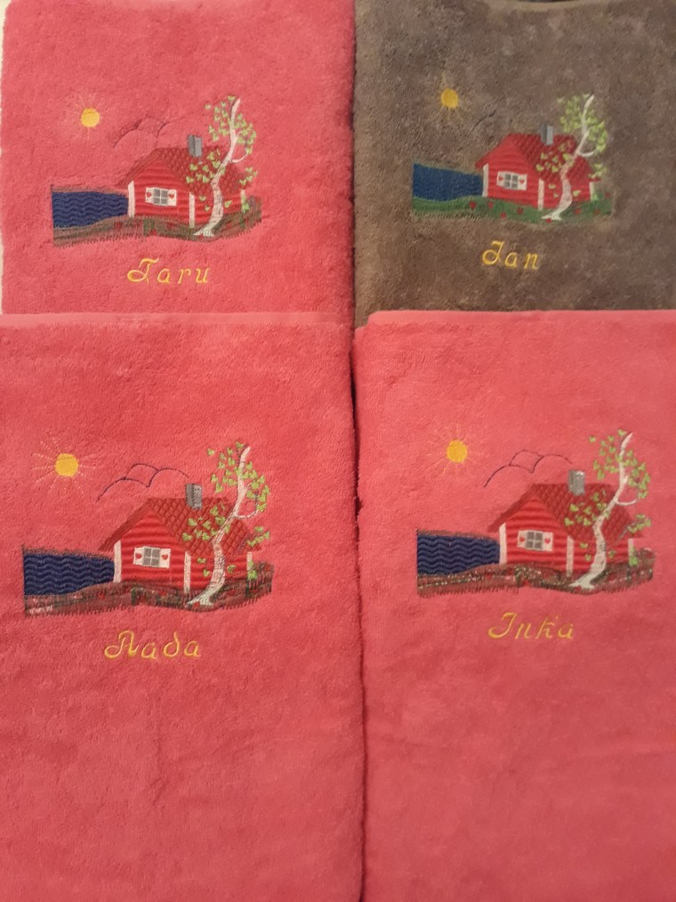 Meiltä löytyy pyyhkeitä koossa 50 x 70 cm, 65 x 140 cm, 70 x 150 cm, 80 x 150 cm,
