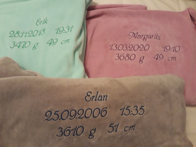 Lahjaksi vastasyntyneelle, syntymäpäiväsankarille pyyhe, seuraa vaihtavalle pelaajalle pyyhe ja kastelahjaksi huppupyyhe.