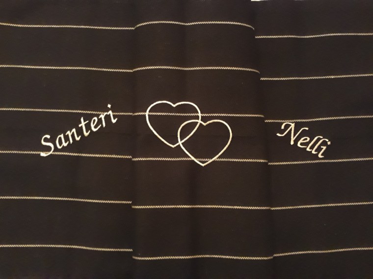 Asiakkaan farkkutakkiin brodeeraus.