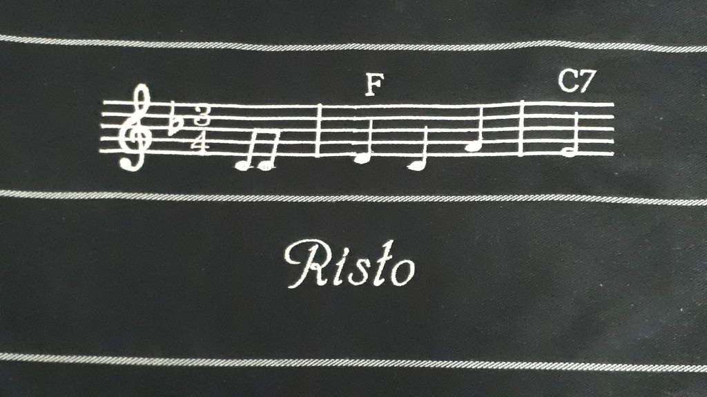 Teemulle Jokipiin pellavan laudeliina (myös meillä myynnissä Jokipiin tuotteet). Merkkejä koiranpeteihin ja näytelmän asuihin merkkejä.